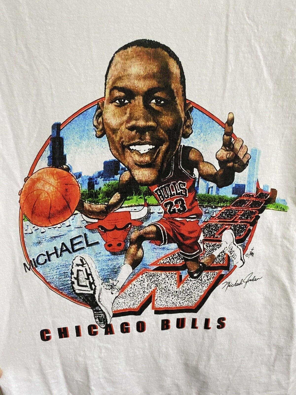 Title (ebay affiliate link): VINTAGE MICHAEL JORDAN ALL OVER PRINT 90s YOUTH T SHIRT CHICAGO BULLS RARE Lg