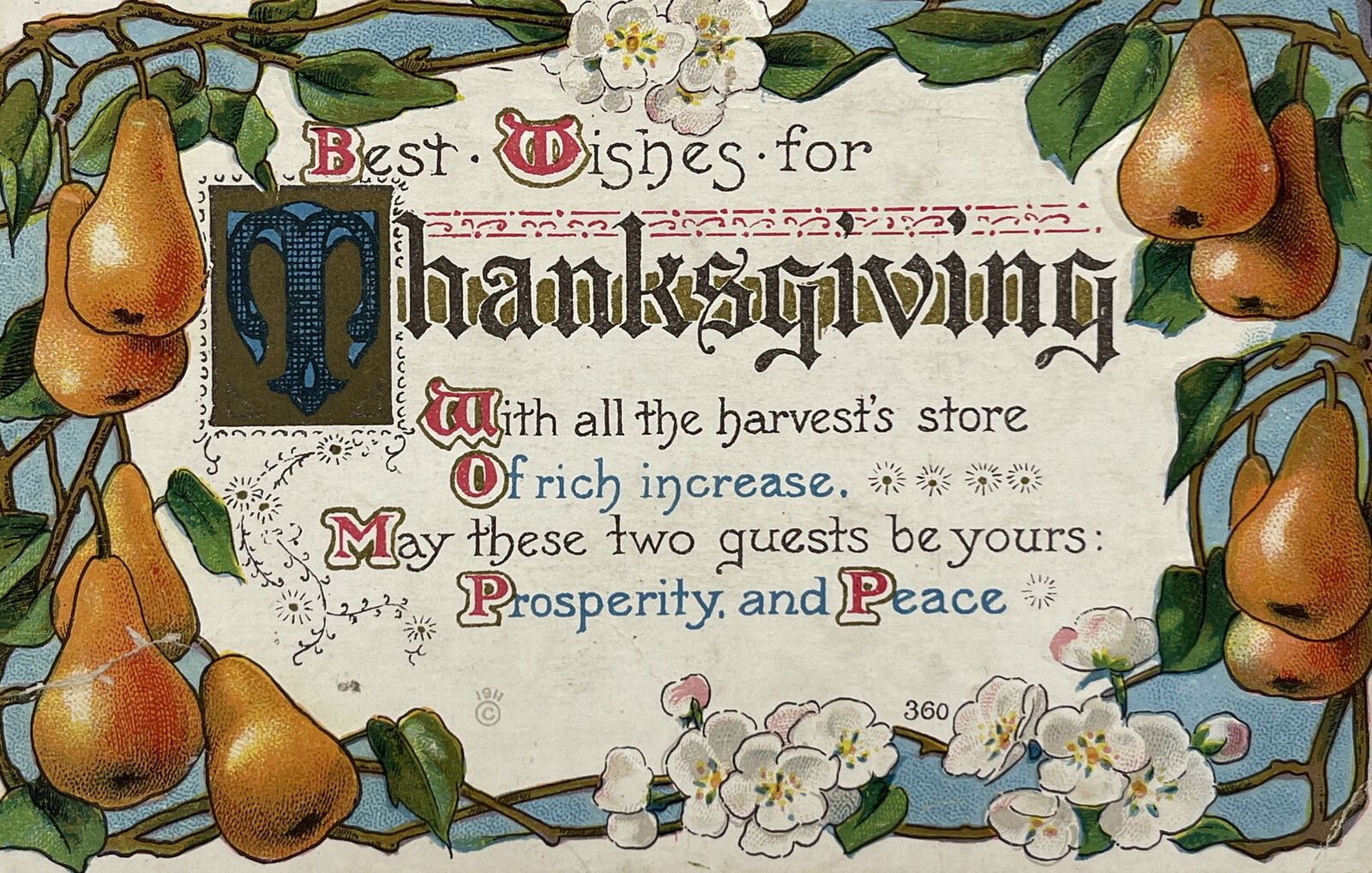 ANTIQUE THANKSGIVING Postcard ELLEN CLAPSADDLE PILGRIM AND PLYMOUTH ROCK