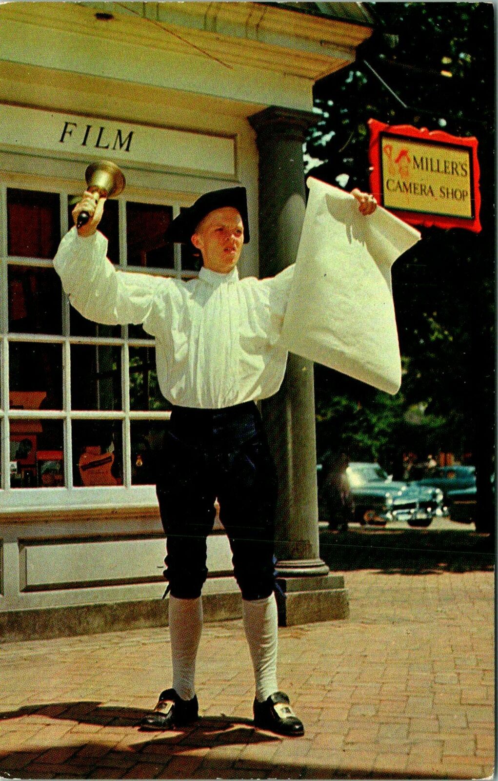 Title (ebay affiliate link): ANTIQUE THANKSGIVING Postcard FRANCES BRUNDAGE TOWN CRIER RINGING BELL