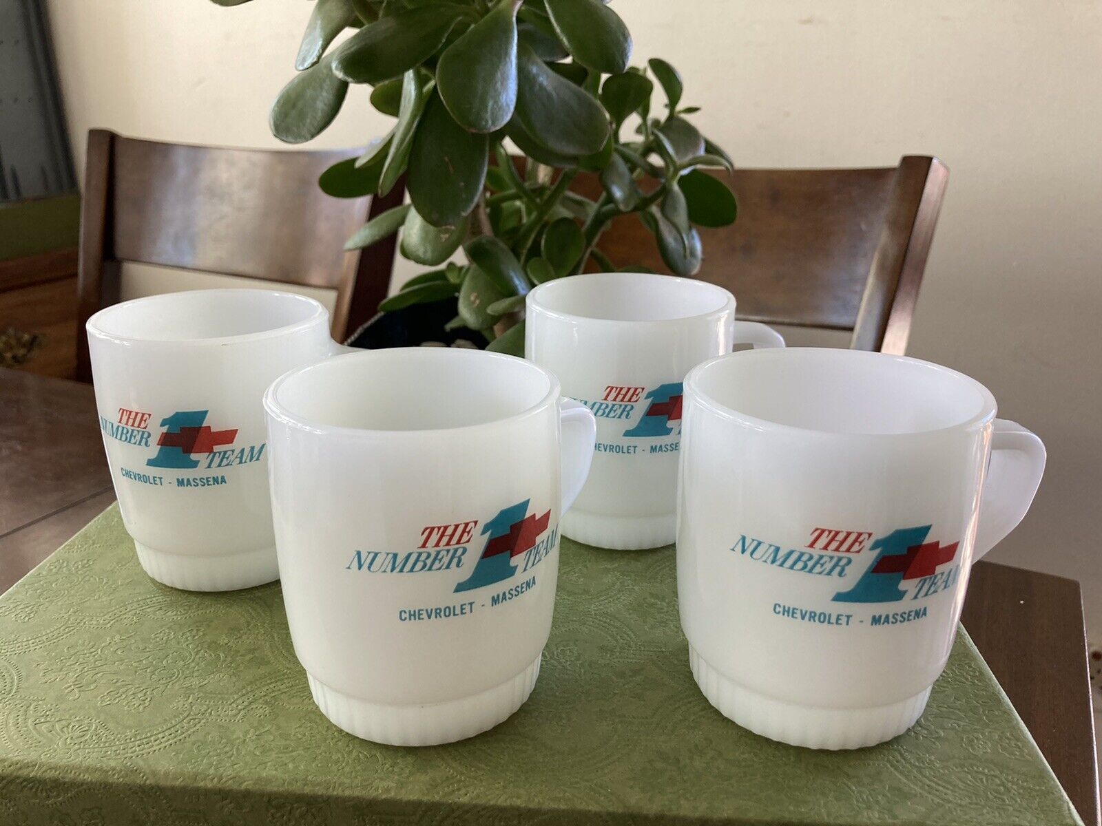 Rare Vintage Chevrolet Massena Fire King Anchor Hocking Milk Glass Coffee Mug.