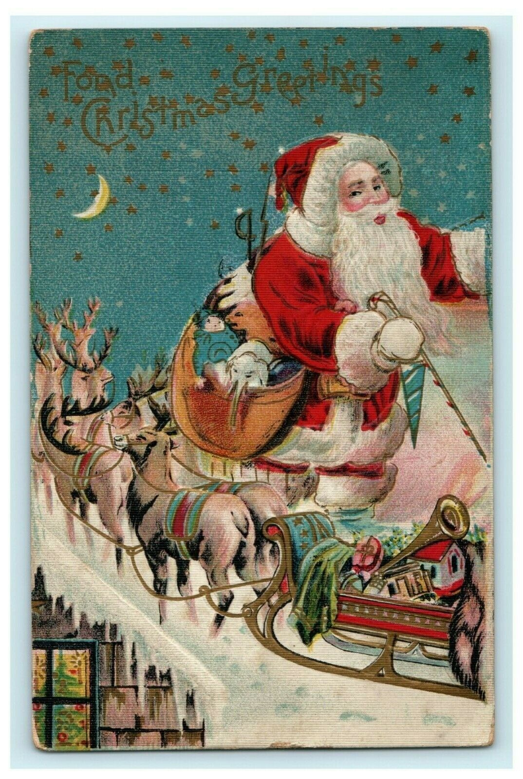 Old Original Postcard Christmas Santa Claus Sled Photograph Antique Post Card
