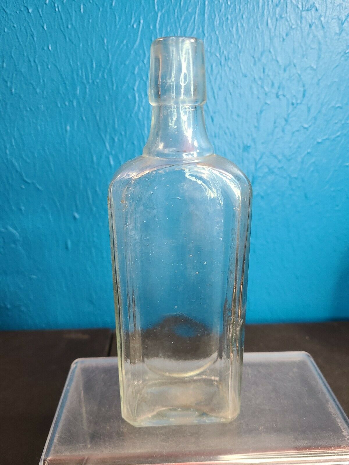 beautiful BLUE MILKGLASS Cased Glass old BARBER / HAIR TONIC / BEAUTY bottle