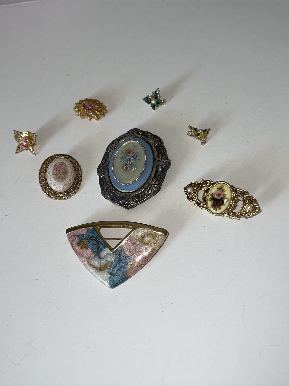 Vintage Gold Tone Milk Glass Brooches 3 Piece Lot