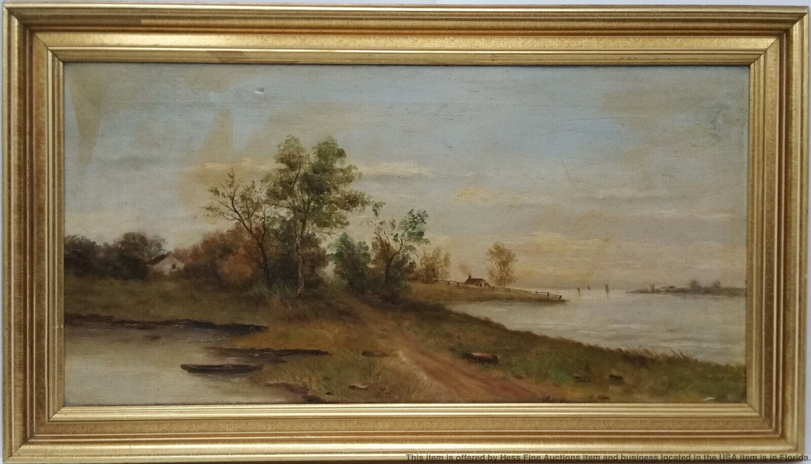 Antique Landscape Seascape Illegibly Signed Oil Painting