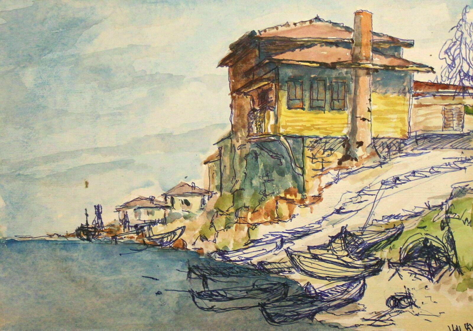 Title (ebay affiliate link): Signed A. Budin Watercolor Landscape Seascape Stunning Painting Antique 1880s