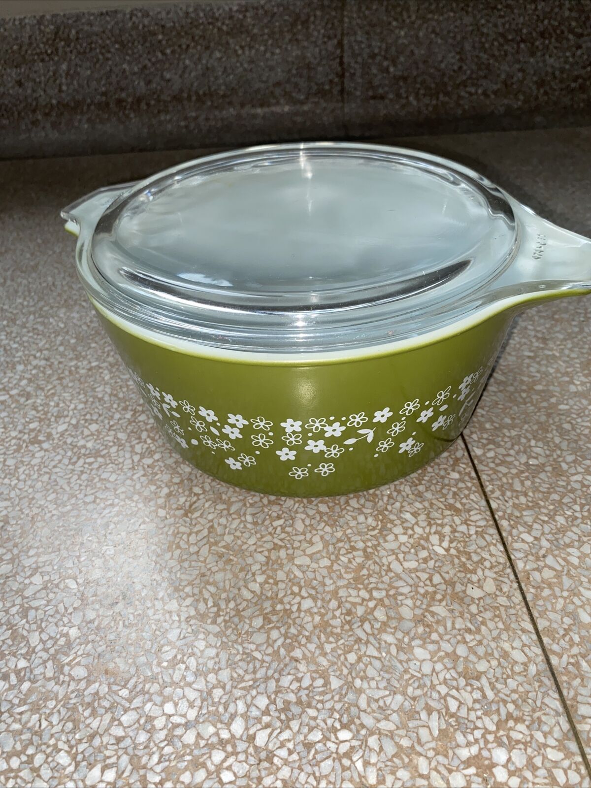 Vintage PYREX Green Spring Blossom Crazy Daisy Refrigerator Dish 501B with LID
