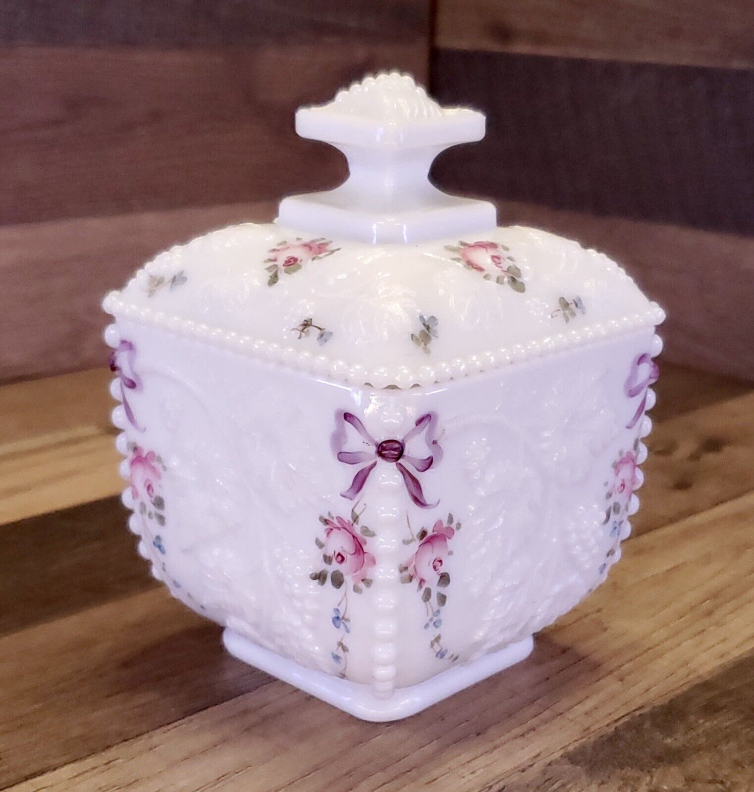 Vintage Westmoreland Milk Glass Beaded Edge Grape Paneled Square Candy Box w Lid