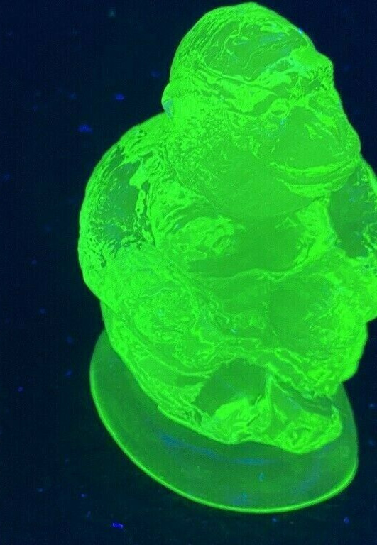 Green Vaseline glass Miss Cotton cat kitty kitten animal uranium paperweight art