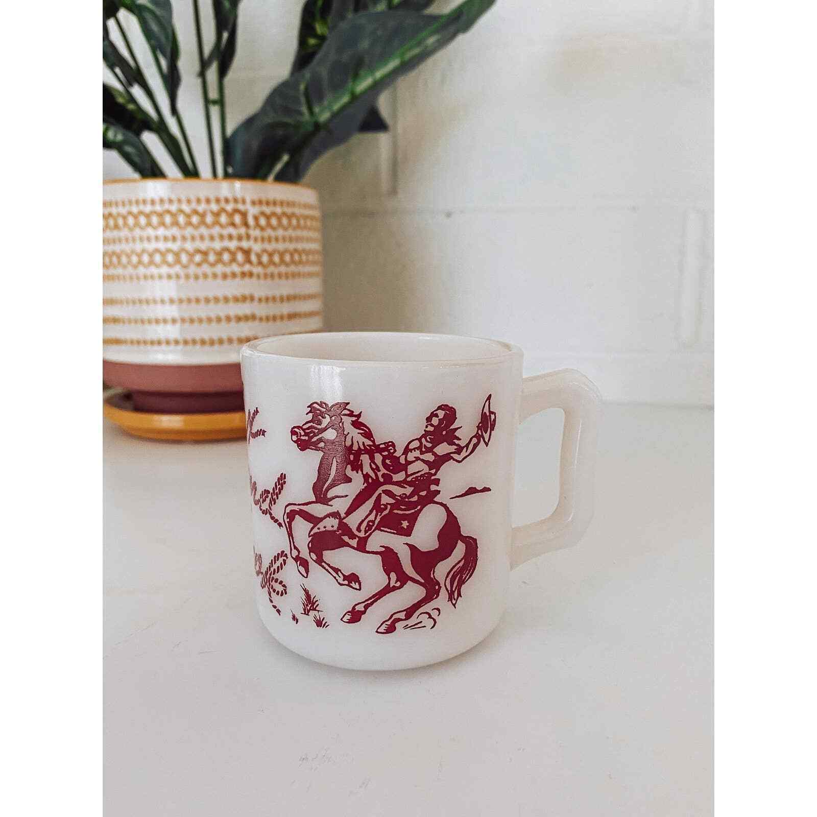 Title (ebay affiliate link): Vintage Hazel Atlas Blue Painted Astronaut Space Theme Milk Glass Mug