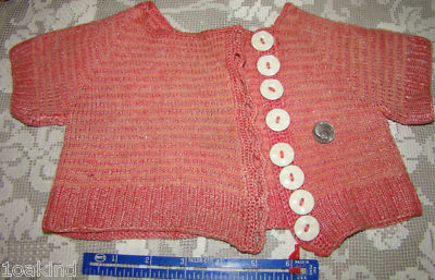 Title (ebay affiliate link): ANTIQUE 1930'S DEEP PINK BABY OR DOLL SWEATER H-KNITTED