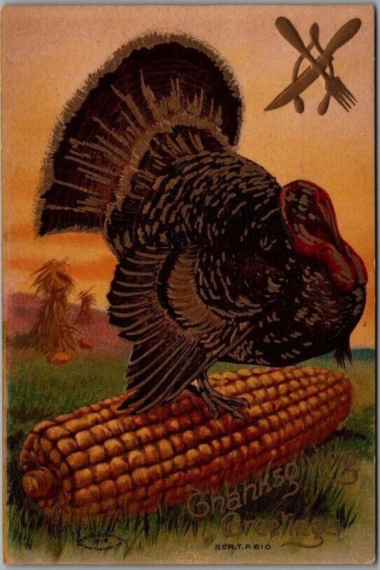 Title (ebay affiliate link): ANTIQUE EMBOSSED THANKSGIVING Postcard YOUNG BOY CARRYING LARGE EAR OF CORN