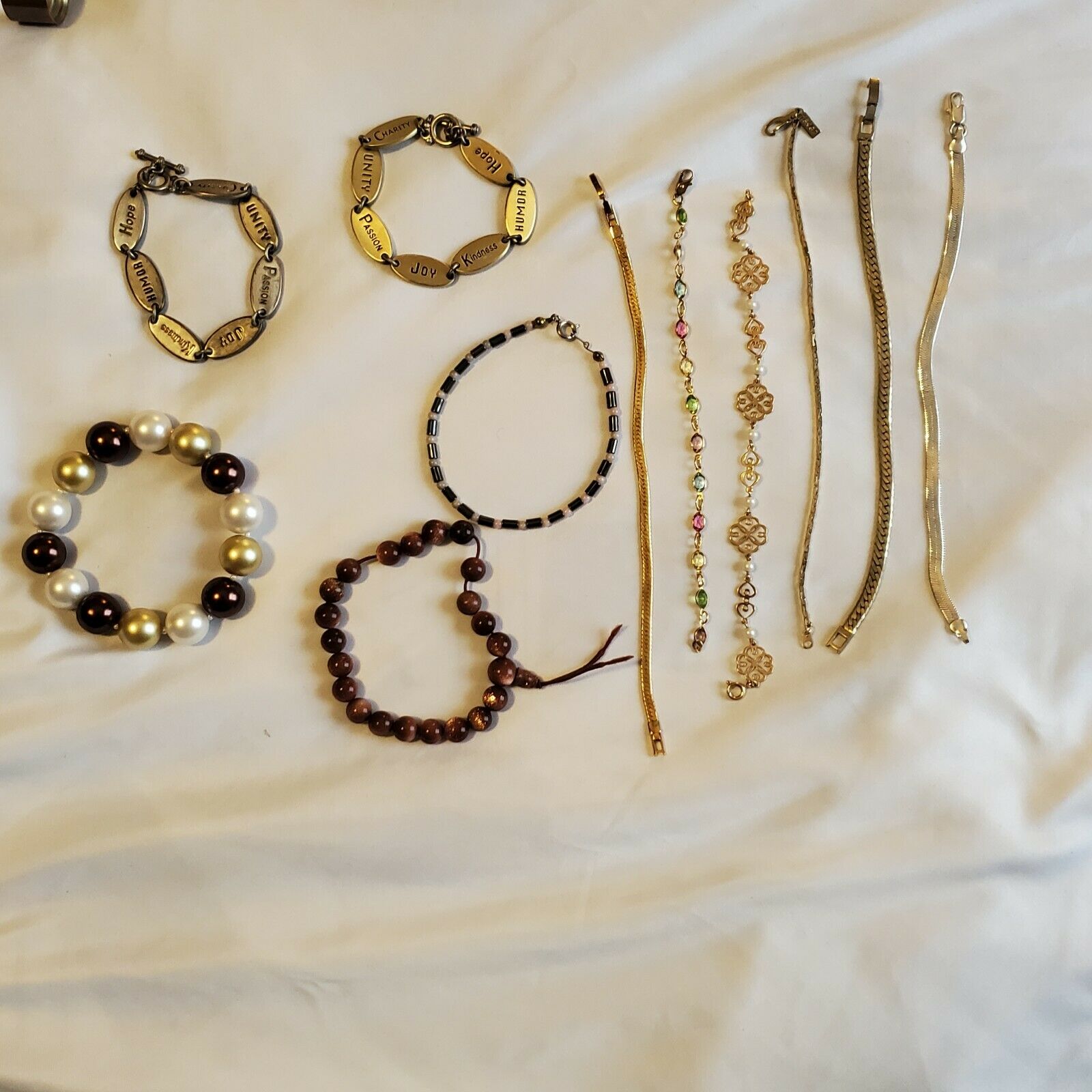 Lot Vintage 2 Modern Silver tone Costume Jewelry bracelets necklace pendants