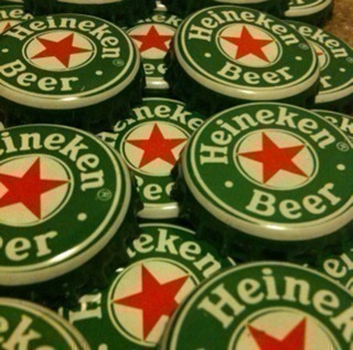 Title (ebay affiliate link): 100 HEINEKEN BOTTLECAPS GREEN WITH RED STAR FOR CRAFTS