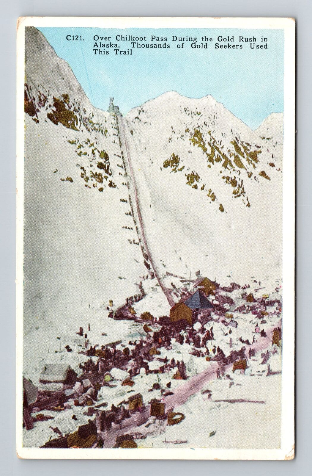 ANTIQUE 1920 TRAIL OF 98 PROSPECTORS GOING OVER CHILKOOT PASS ALASKA POSTCARD