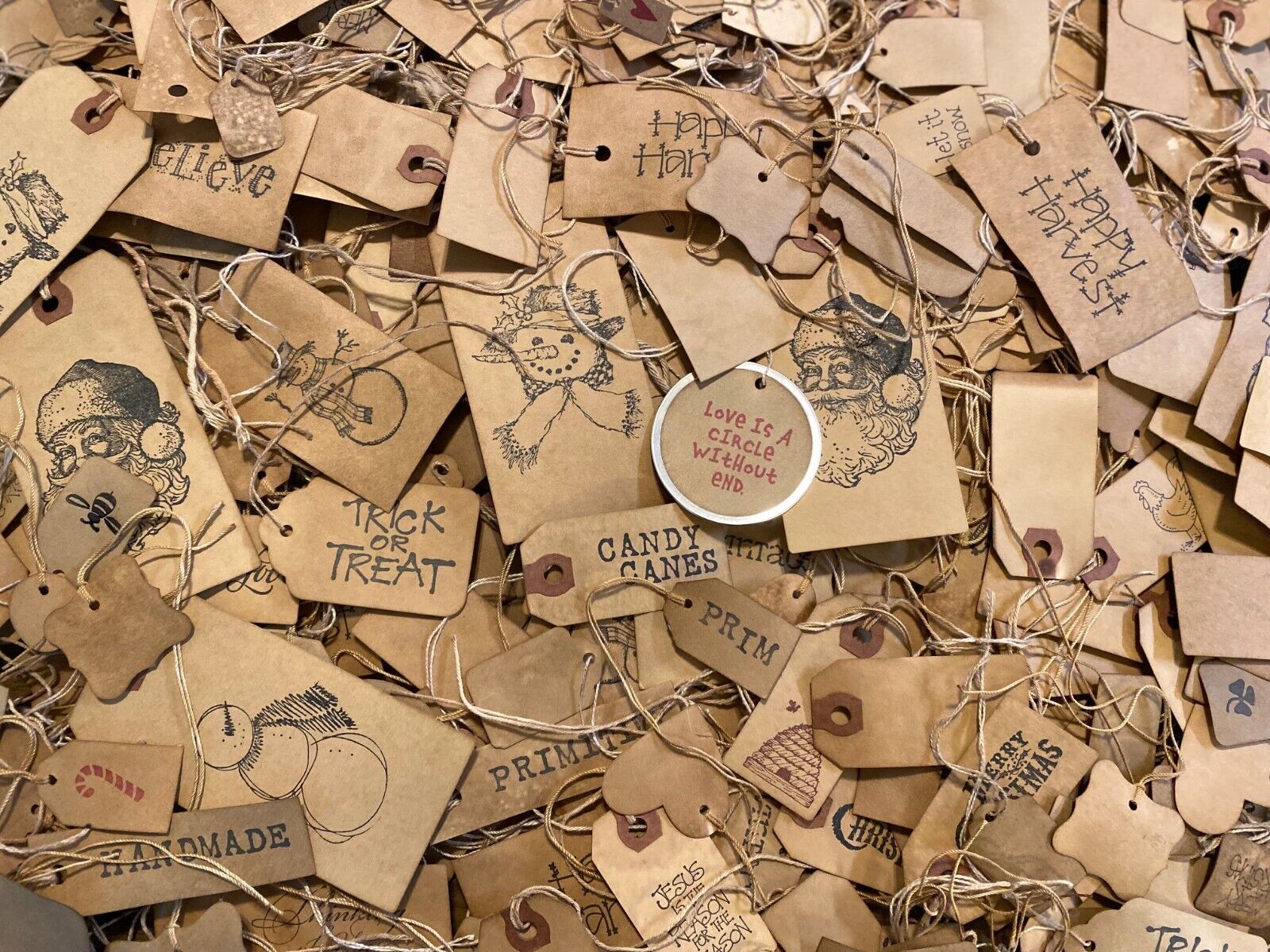 Title (ebay affiliate link): SECONDS 300 Assorted Coffee Stained Grungy Primitive Hang Price Tags lot A13