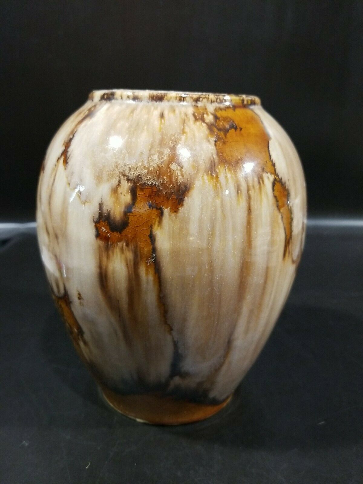 Title (ebay affiliate link): Mint Vintage Early BRUSH MCCOY Pottery Vase Blue Brown Onyx Drip Glaze