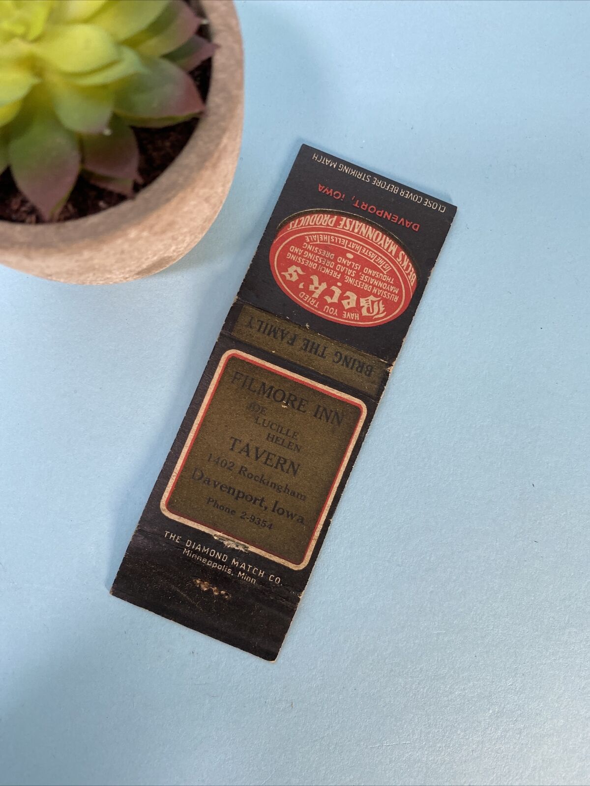 Title (ebay affiliate link): Blackhawk Brewery Matchbook Davenport Iowa Beer Beverages Full Longneck