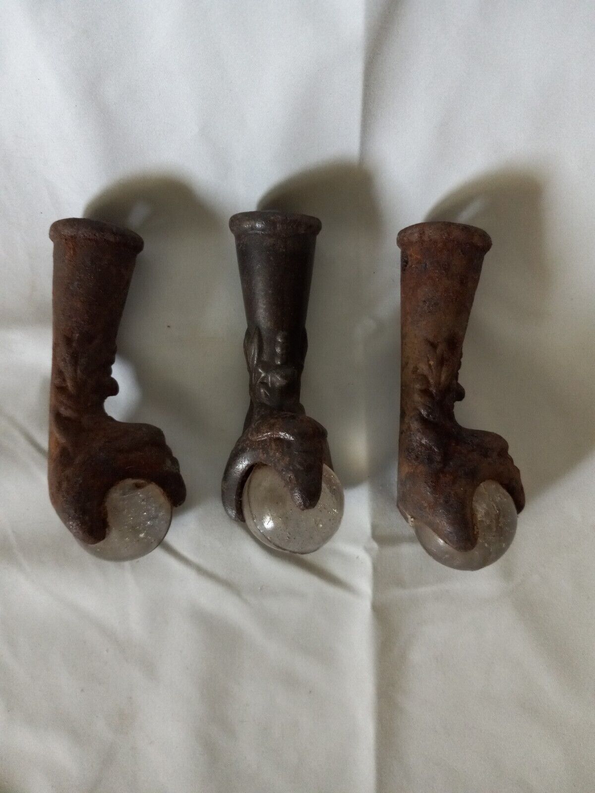 Title (ebay affiliate link): Vtg Glass Ball Claw Feet Set of 4 Table Piano Stool Legs Foot Antique