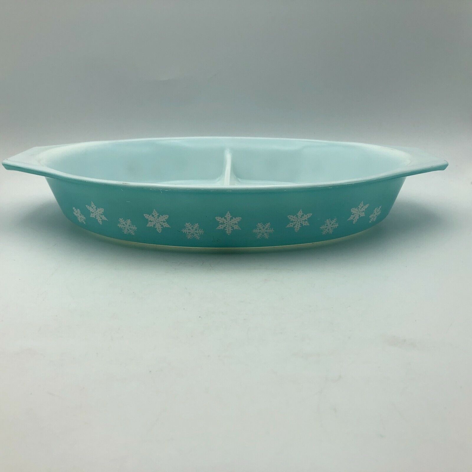 Vintage PYREX Snowflake 11/2 Quart Divided Serving Dish.