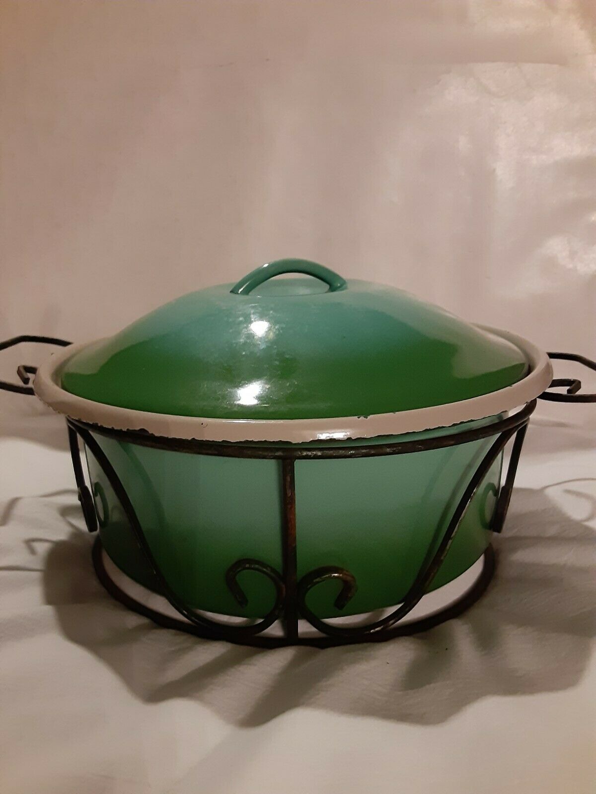vintage Beautiful blue pryrex casserole dish with stand and lid
