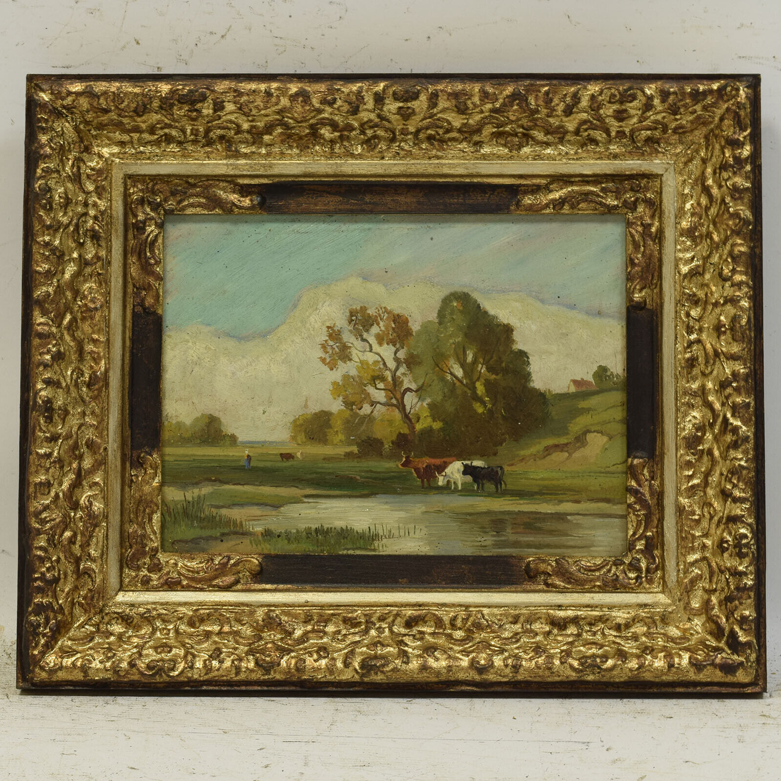Title (ebay affiliate link): Antique American Country Farm Country Landscape Painting Gold Gilt Frame NR
