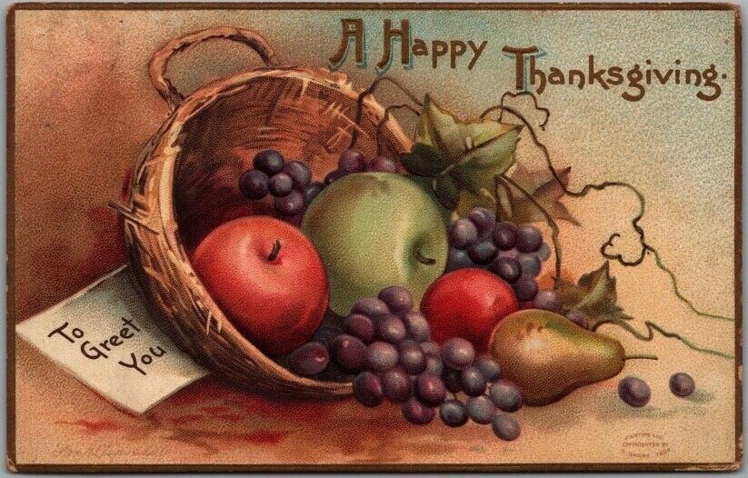 ANTIQUE THANKSGIVING Postcard ELLEN CLAPSADDLE YOUNG GIRL BASKET ON HEAD