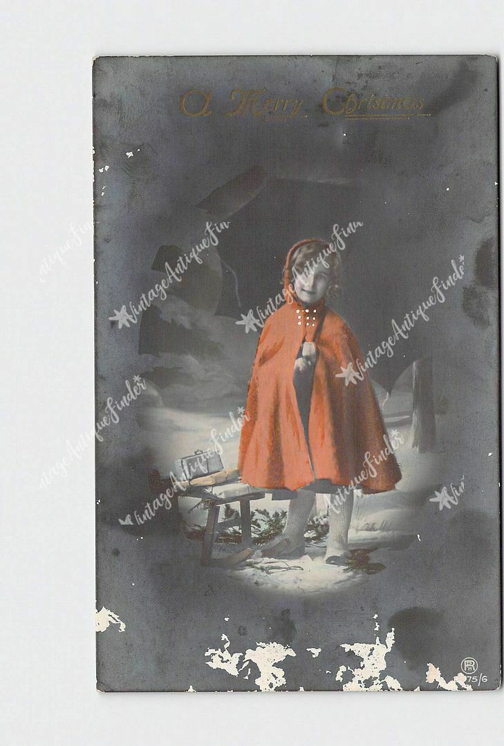 ANTIQUE CHRISTMAS Postcard YOUNG LADY RED CAPE KNOCKING ON DOOR GIFTS