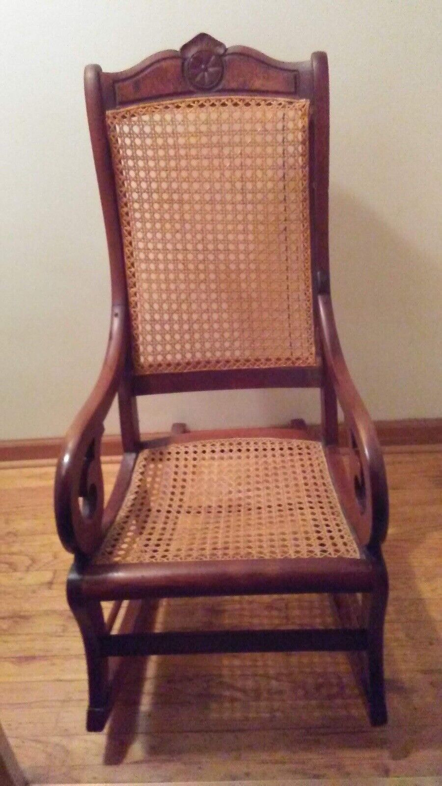Title (ebay affiliate link): Vintage Oversize White Victorian Style Wicker Rattan Rocking Chair Lounge Chair