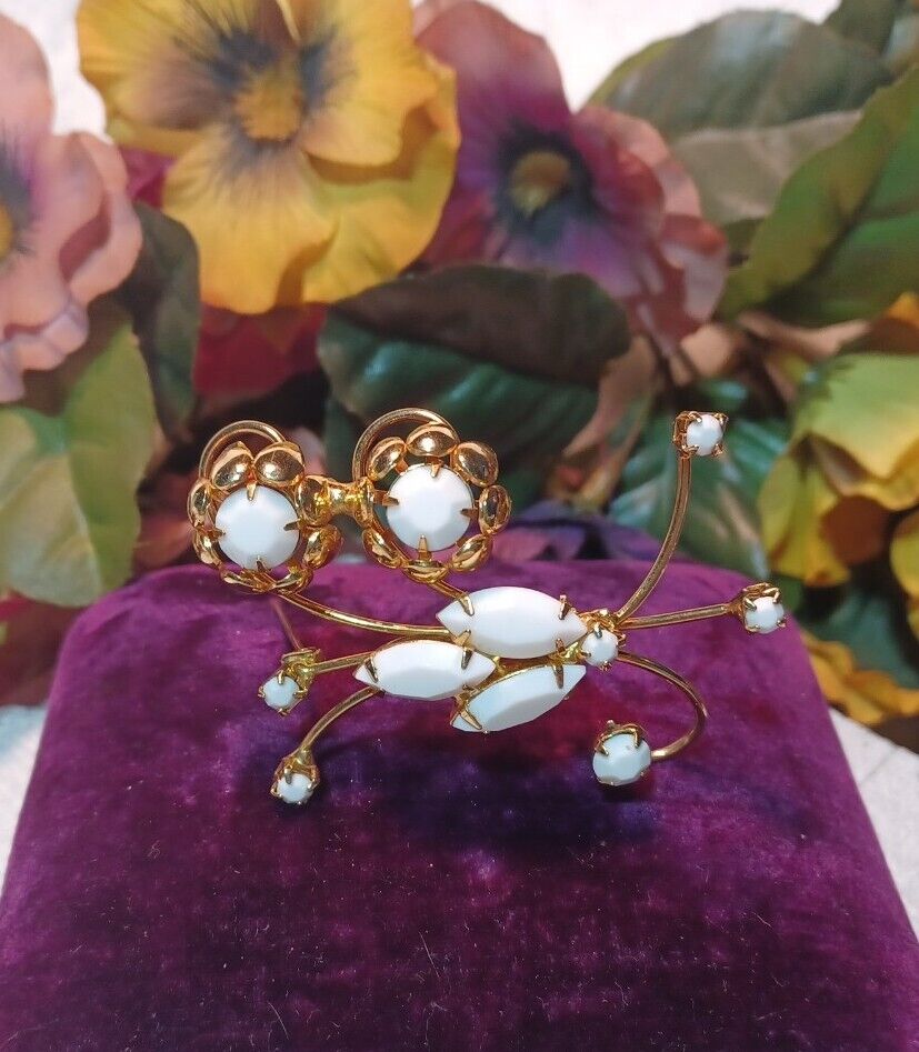 Title (ebay affiliate link): A125 DE JULIANA Vintage White Milk Glass Pear Marquise AB Rhinestone Brooch Pin