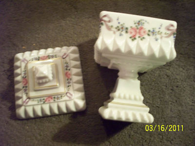 Westmoreland Hand Paint Milk Glass Wedding Cake Compote