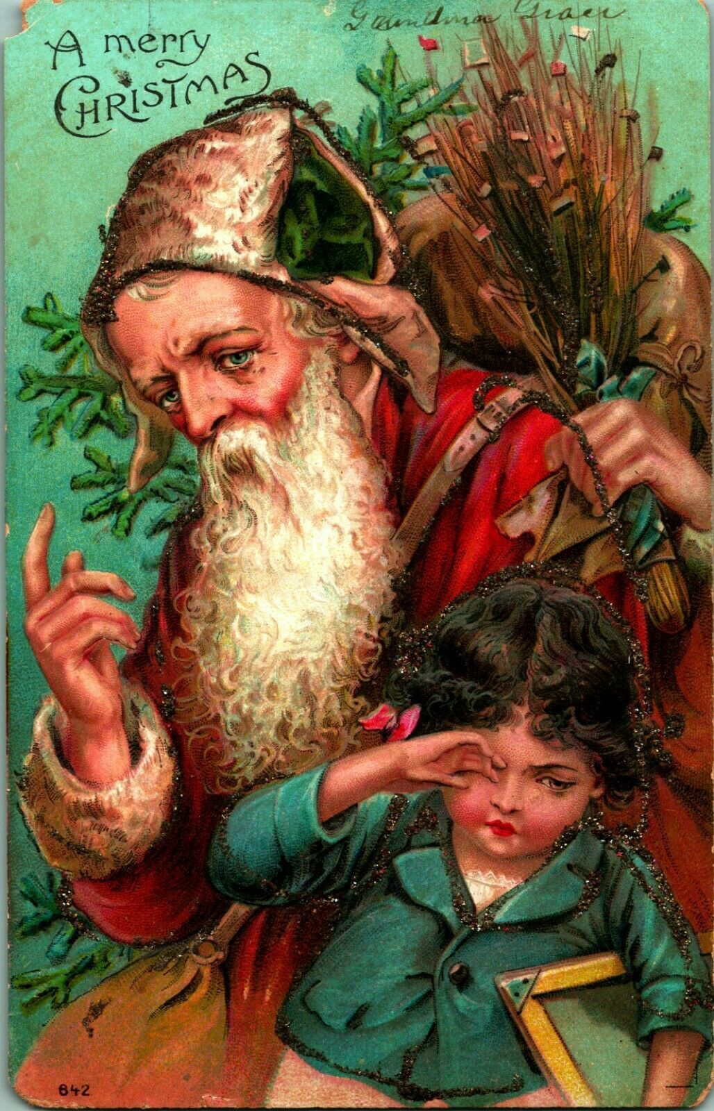 Title (ebay affiliate link): ANTIQUE CHRISTMAS Postcard YOUNG GIRL LOOKING AT HER STOCKING