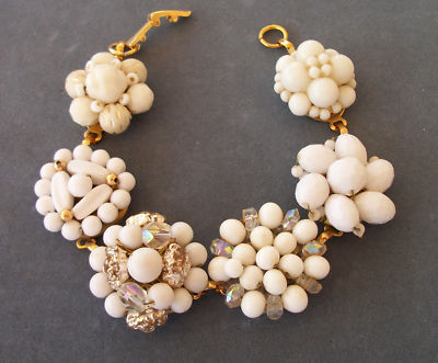 Vintage CHUNKY Cluster Bead Earring Bracelet MILKGLASS