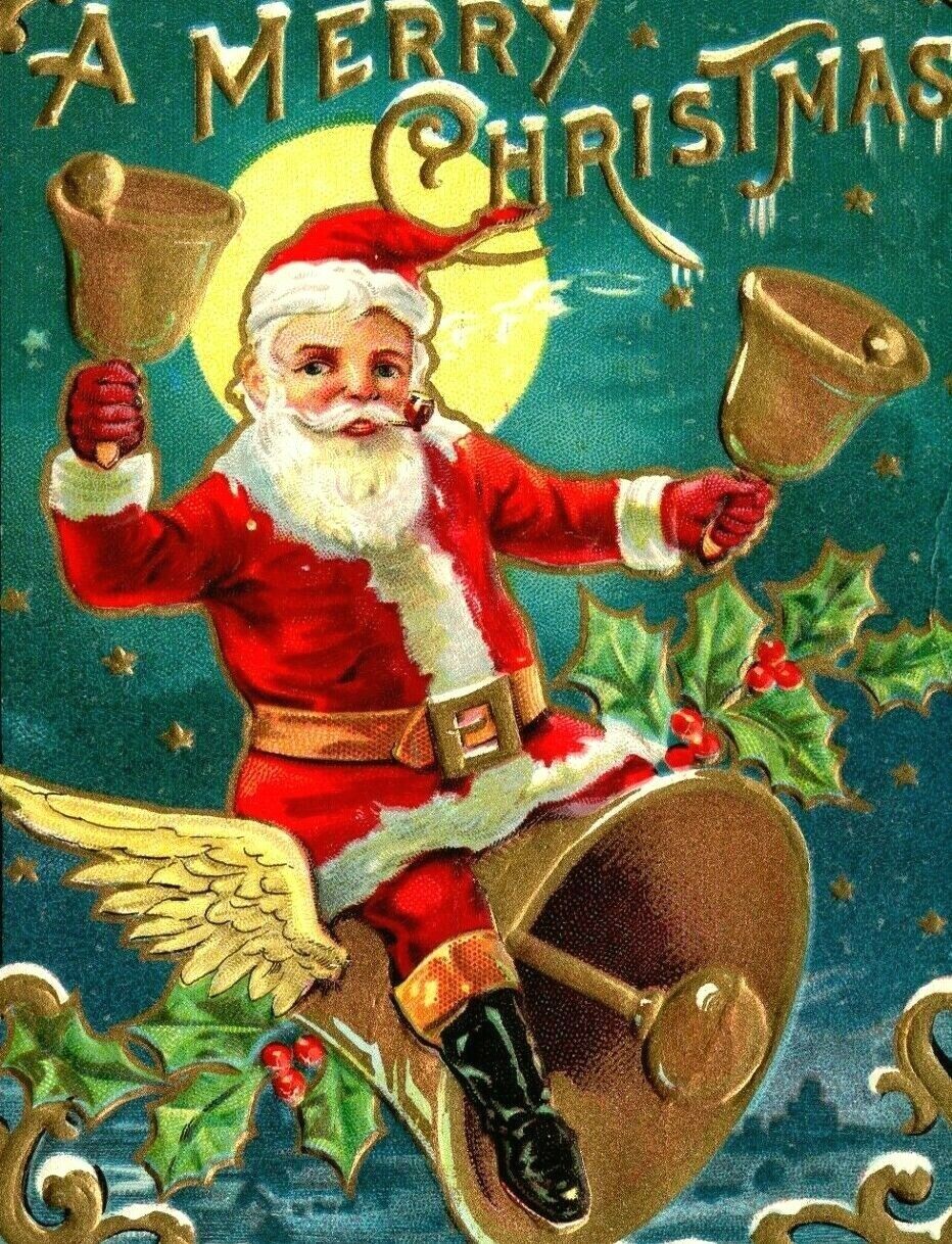 Title (ebay affiliate link): ANTIQUE EMBOSSED CHRISTMAS Postcard KRIS KRINGLE HOLDING HOLLY