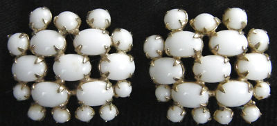 Vintage Milk Glass Cabochon Earrings Clip On Pat. Pend.
