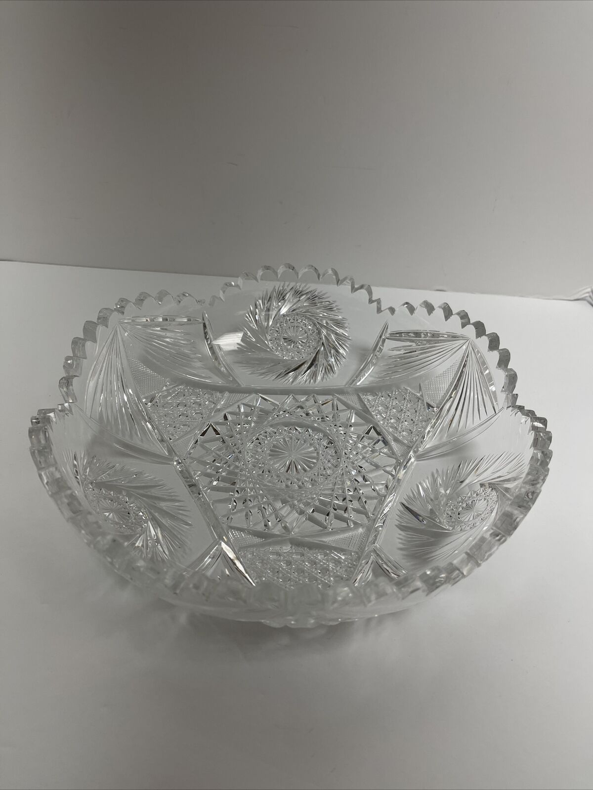 Antique American Brilliant Cut Glass ABP 734 Low 8 Sided Bowl Stunning 2 yqz
