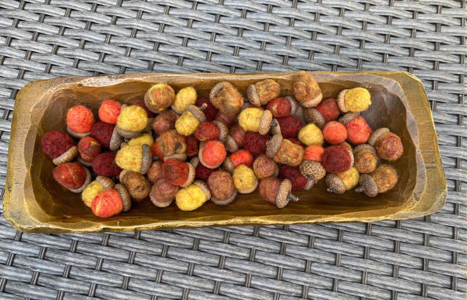 Title (ebay affiliate link): Lot of 5 pRiMiTiVe Wool Candy Corn OrniesPillowsWool AppliqueAutumnFall