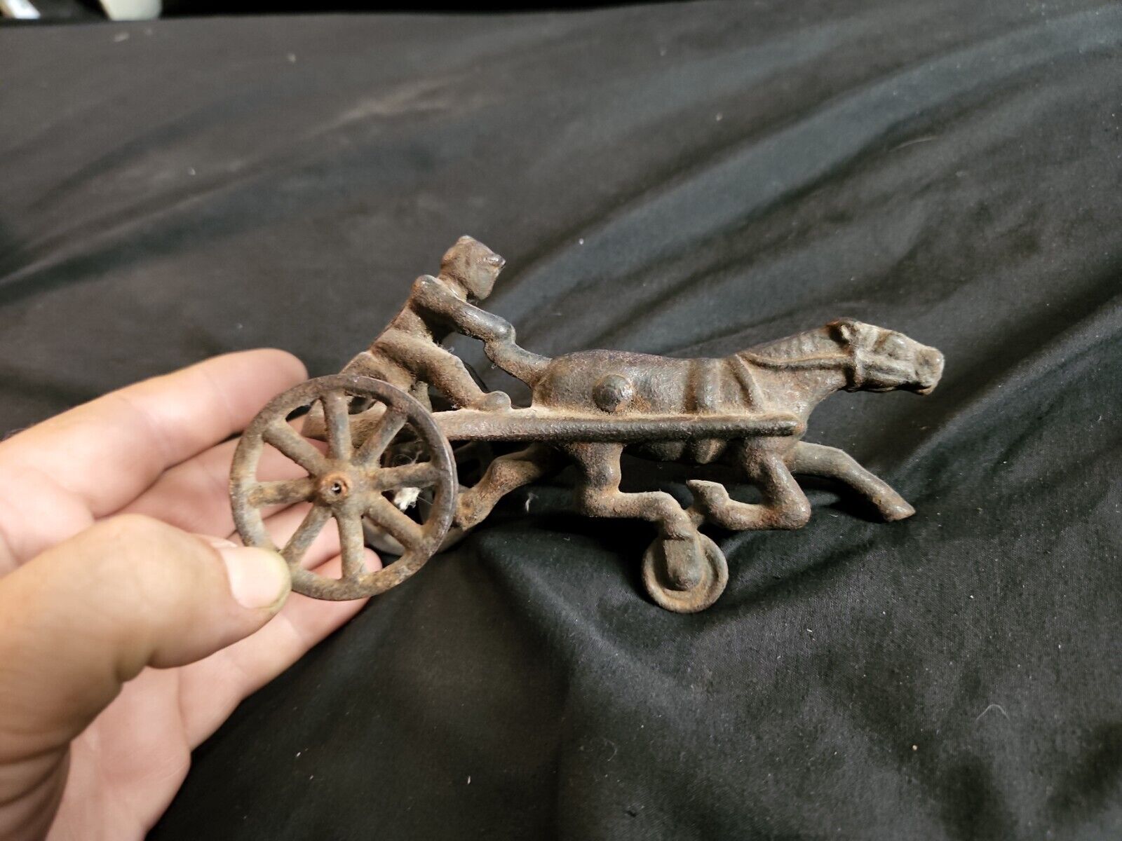 Antique VINTAGE ARCADE CAST IRON HORSE DRAWN TOY JOCKEY AND SULKY USA