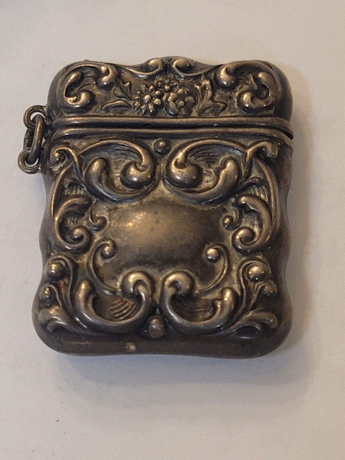 Vintage ANTIQUE STERLING SILVER VICTORIAN Wooden MATCH SAFE ART NOUVEAU