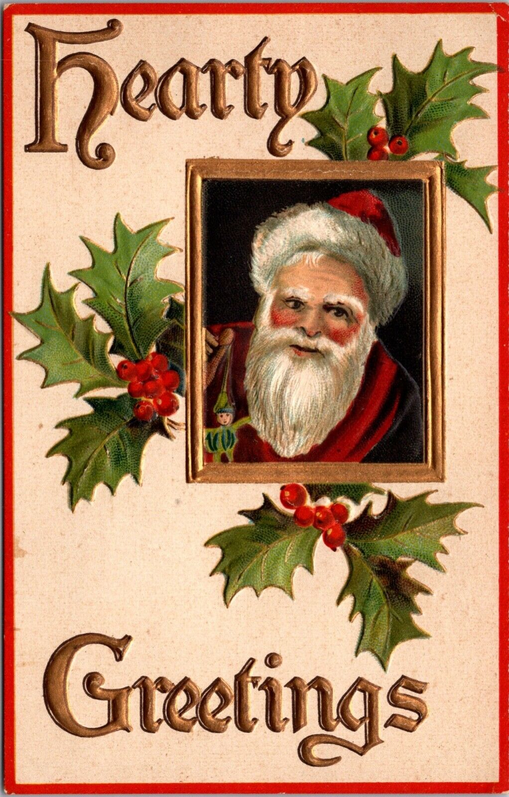 ANTIQUE EMBOSSED CHRISTMAS Postcard SANTA CLAUS BOY AND GIRL TALKING ON PHONE