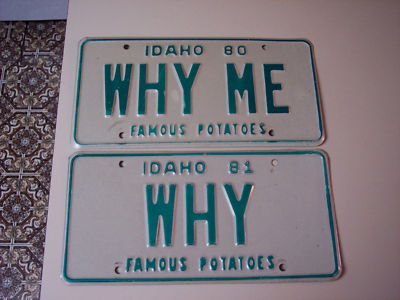 Title (ebay affiliate link): VINTAGE OLD PERSONALIZED LICENSE PLATE WHY WHY ME IDAHO
