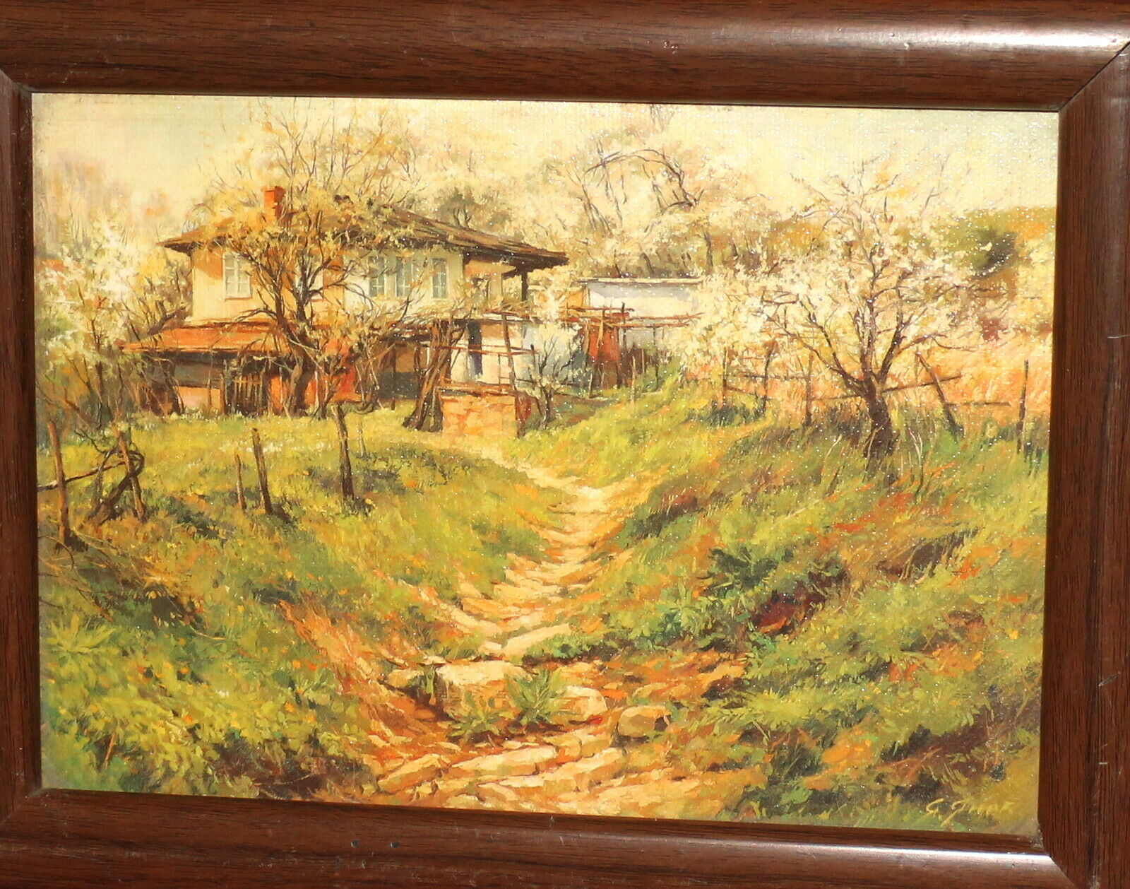 Title (ebay affiliate link): LG Vintage DUTCH WINDMILL Old DIRT ROAD Farm House VILLAGE TOWN Oil PAINTING