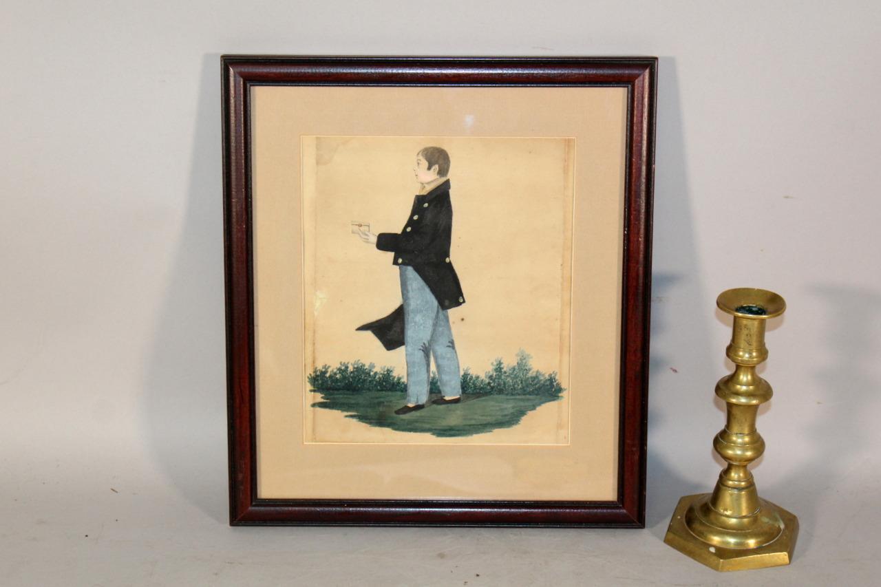 GREAT EARLY 19TH C WATERCOLOR PROFILE PORTRAIT OF A YOUNG MAN HOLDING A LETTER