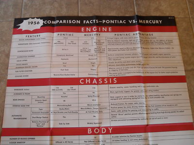 Title (ebay affiliate link): 1956 Pontiac vs Mercury Comparison Poster 38x50