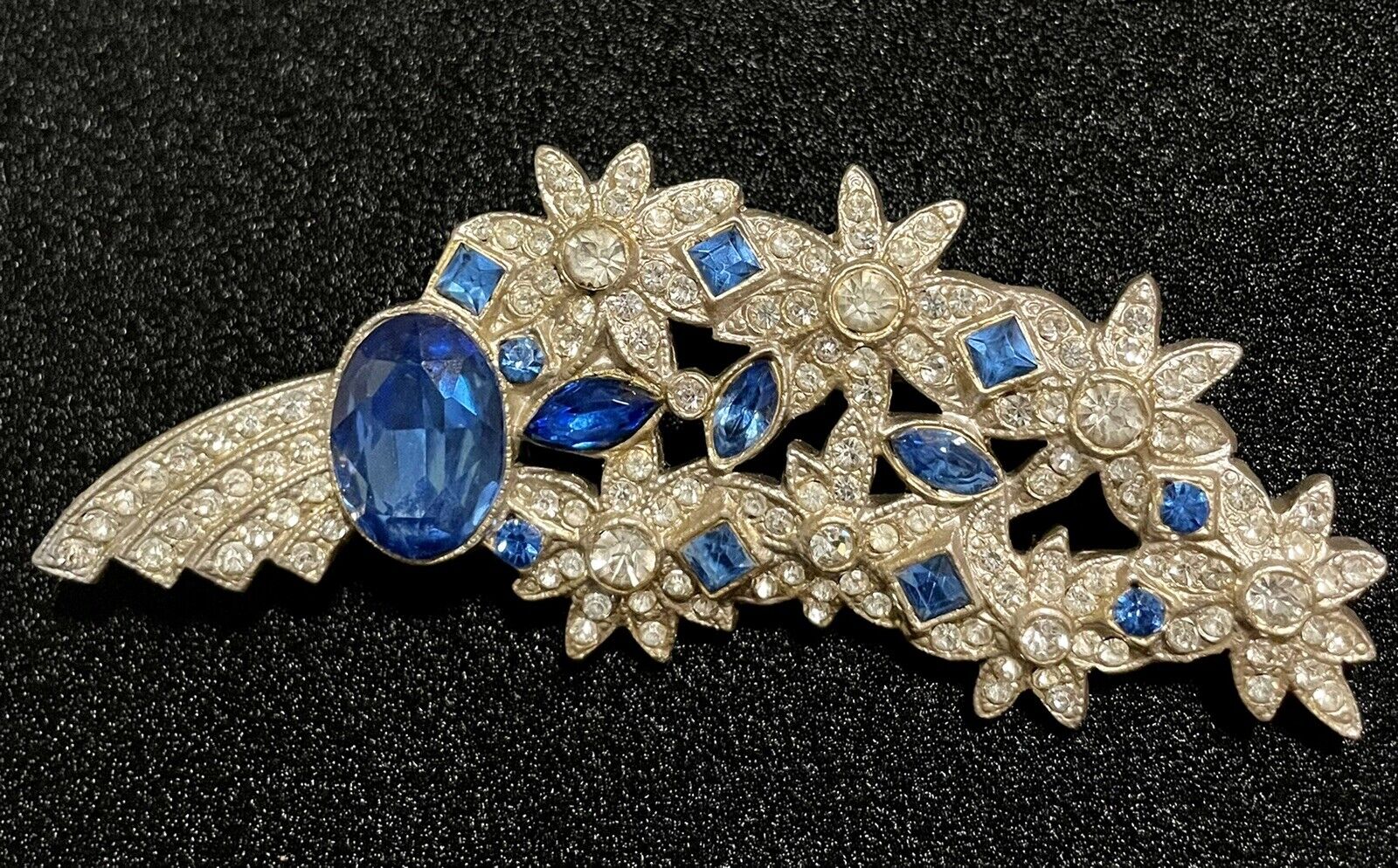 Vintage Large Czech Glass Brooch Jewelry Pink Yellow Rhinestones Insane Sparkle