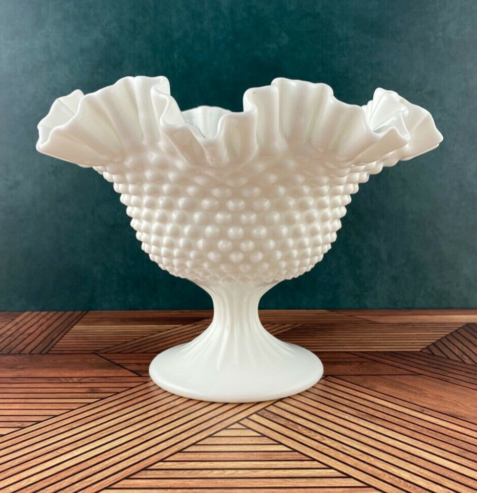 Fenton Milkglass Platter Bowl Dessert Pastry Pie Ruffled Pedestal Stand