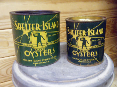 SHELTER ISLAND 1/2 AND 1/4 GAL. OYSTER TIN OYSTER CAN