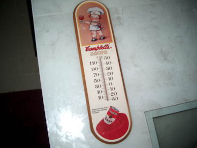 Rare Vntg Campbells Soup Wooden Thermometer Sign Works!