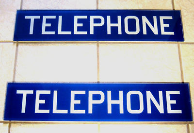 Vintage Telephone Booth Glass Sign Blue Advertisement 2