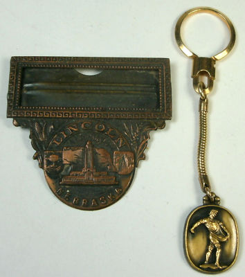 Vtg Lincoln,NE Souvenir-Coppertone Badge,Sower Keychain