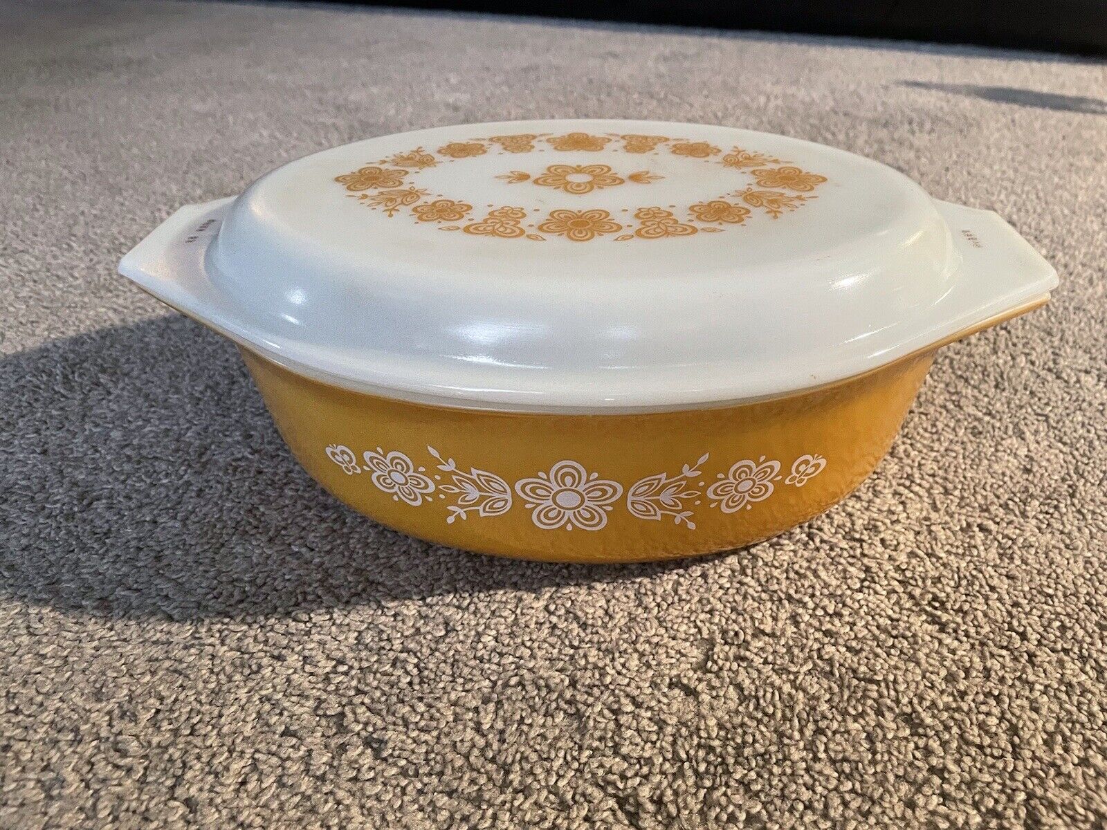 Mid Century Modern 2 1/2 qt. Pyrex Golden Hearts Casserole Dish 045 with Cover